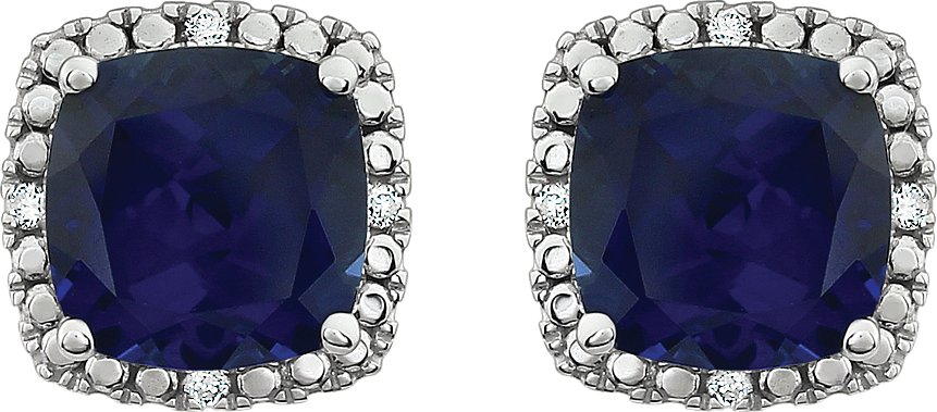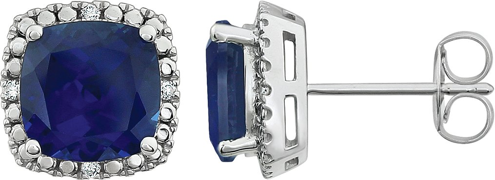 Description: Created Blue Sapphire And .06Ctw Diamond Earrings