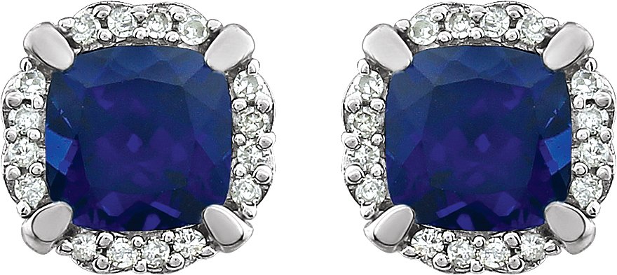 Description: Created Blue Sapphire And 1/10 Ctw Diamond Earrings With Backs