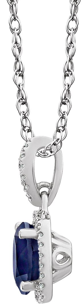 14K White Created Blue Sapphire & 1/8 CTW Diamond 18 inch Necklace