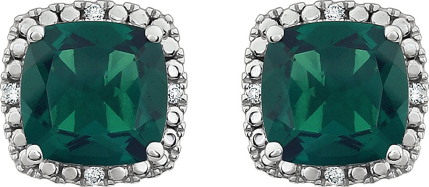 Description: Created Emerald And .06Ctw Diamond Earrings