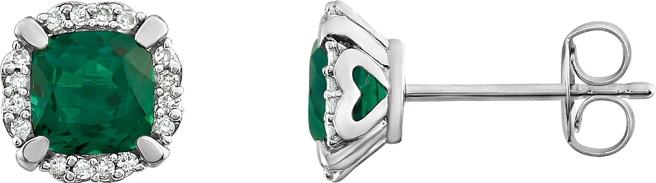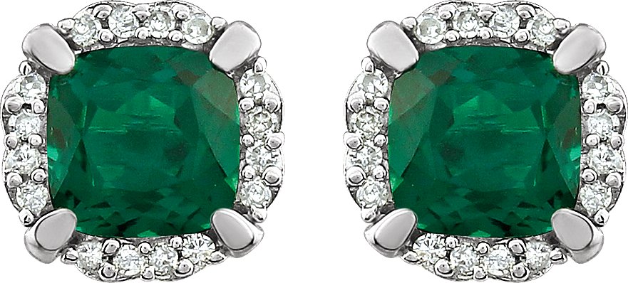 Description: Created Emerald And 1/10 Ctw Dia Earrings With Backs