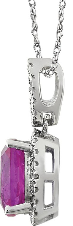 14K White Created Pink Sapphire & .03 CTW Diamond 18 inch Necklace