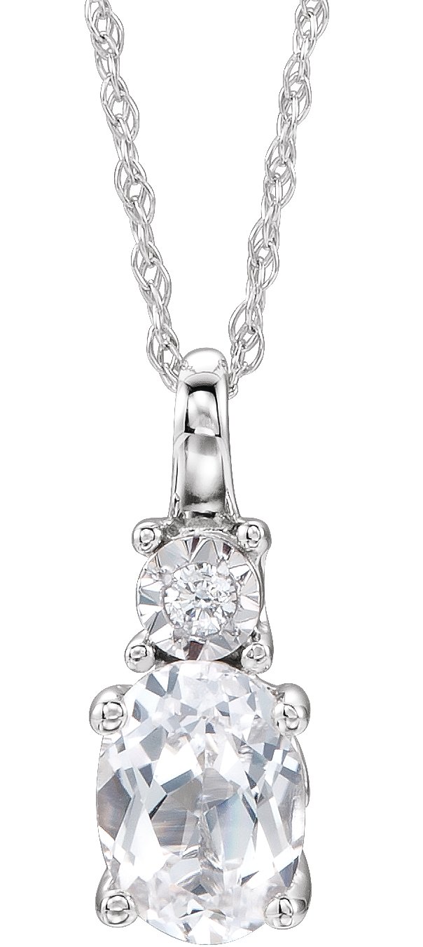 14K White Created White Sapphire & .02 CTW Diamond 18 inch Necklace