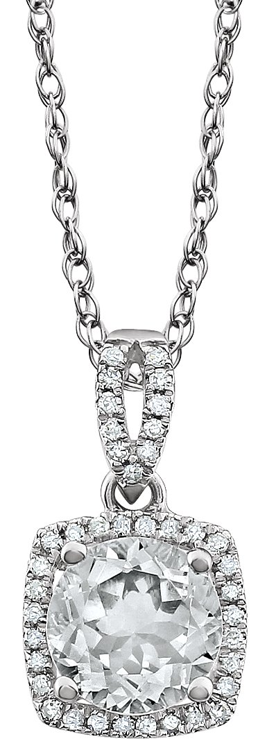 Description: White Sapphire And 1/8 Ctw Diamond Necklace