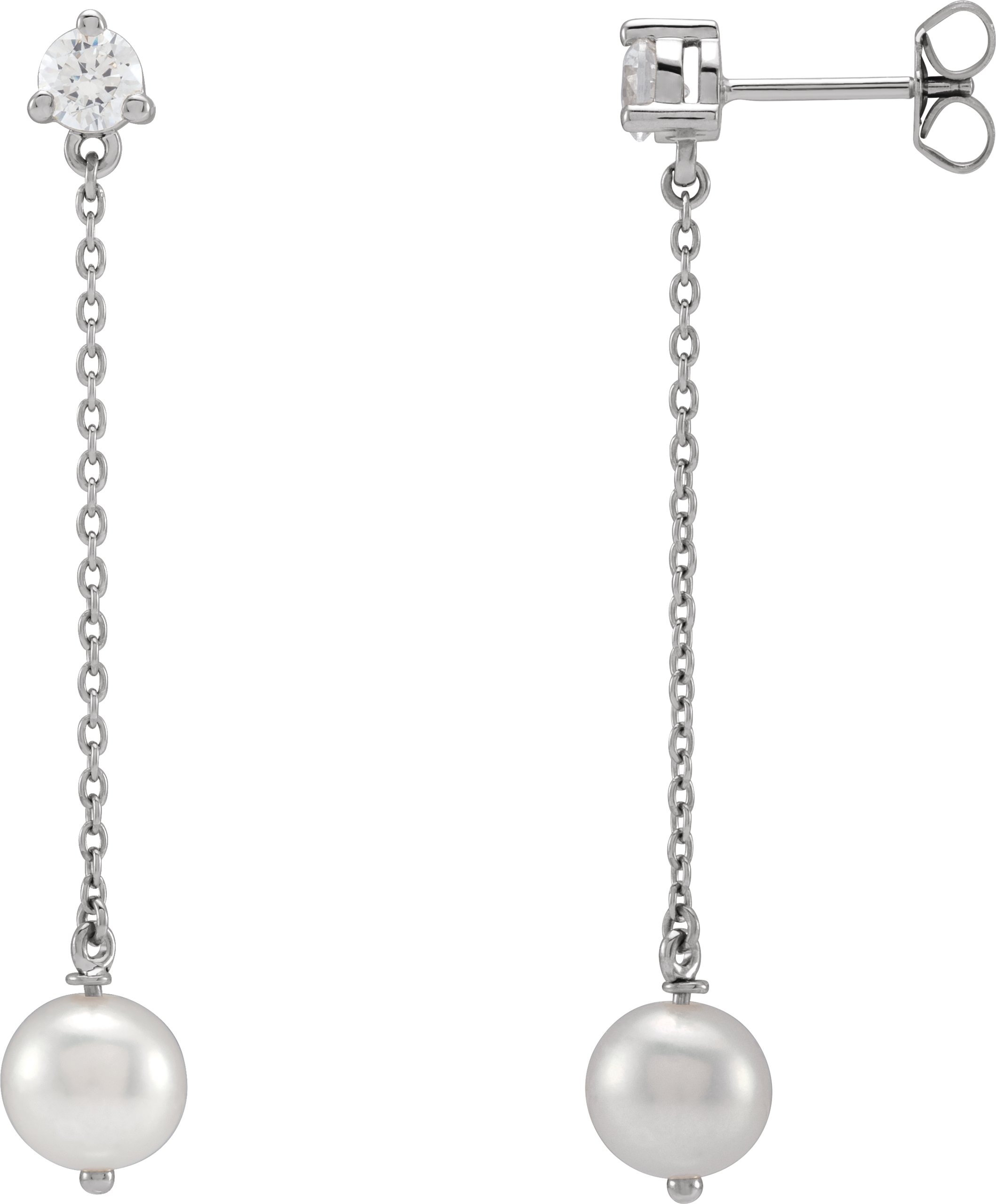 Description: Freshwater Pearl And Lab-Grown Diamond Earrings