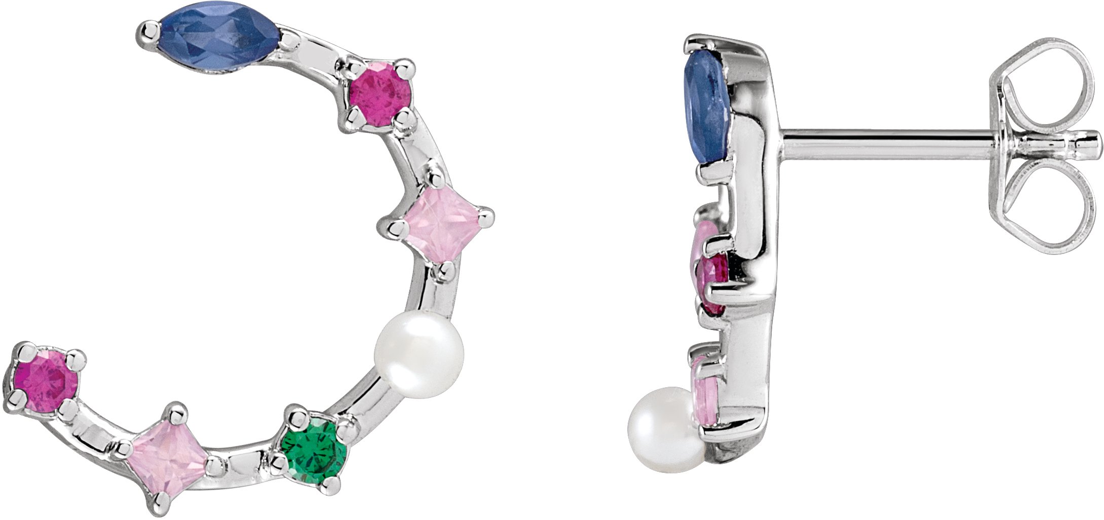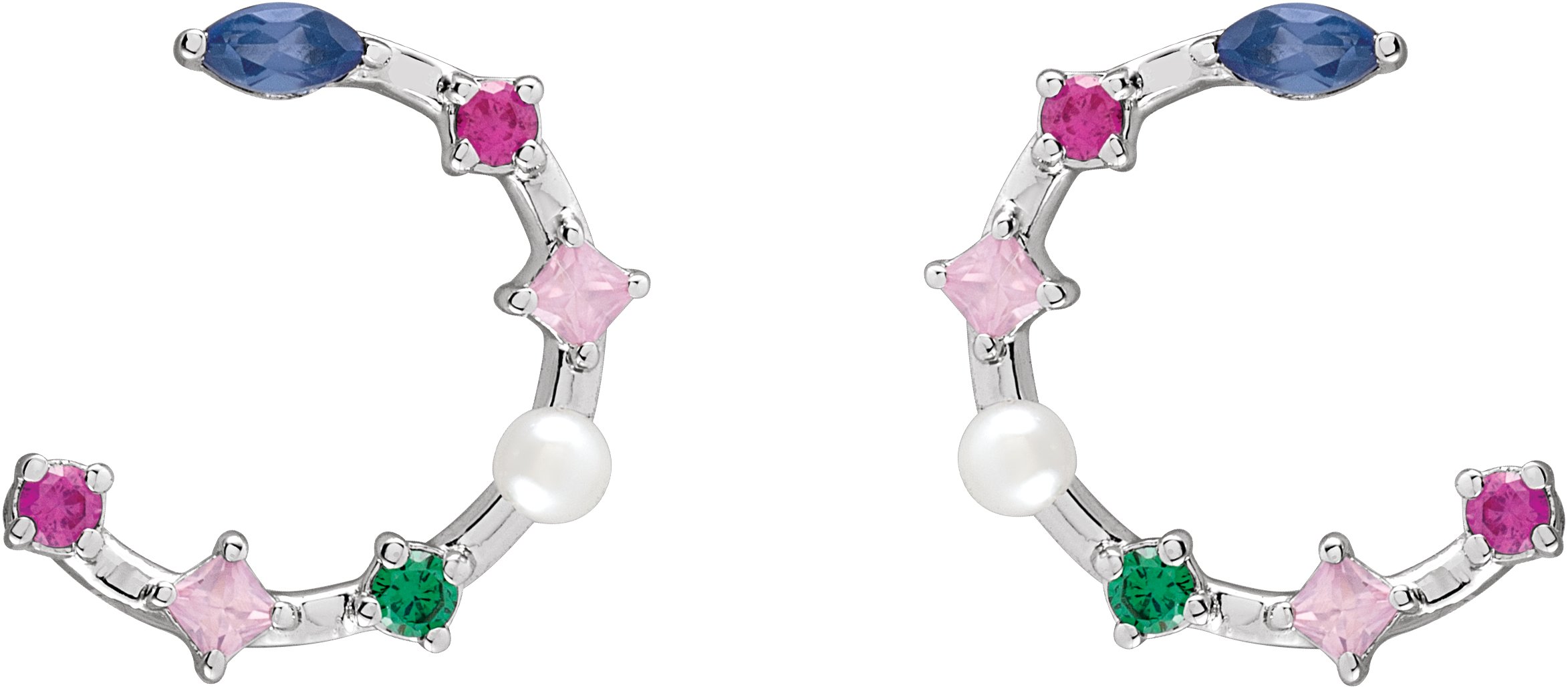 14K White Cultured Freshwater Pearl and Natural Multi Gemstone Earrings Ref 19311400