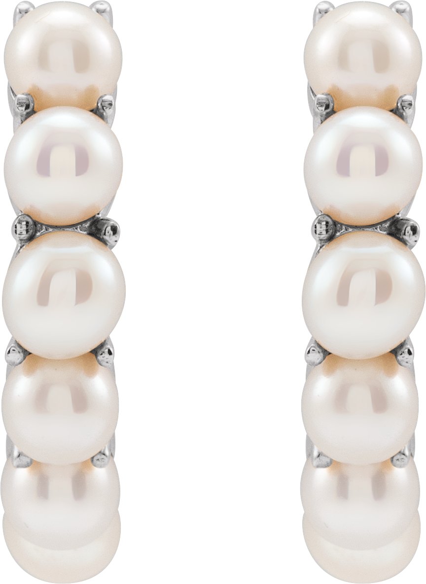 Description: Cultured White Freshwater Pearl Hoop Earrings