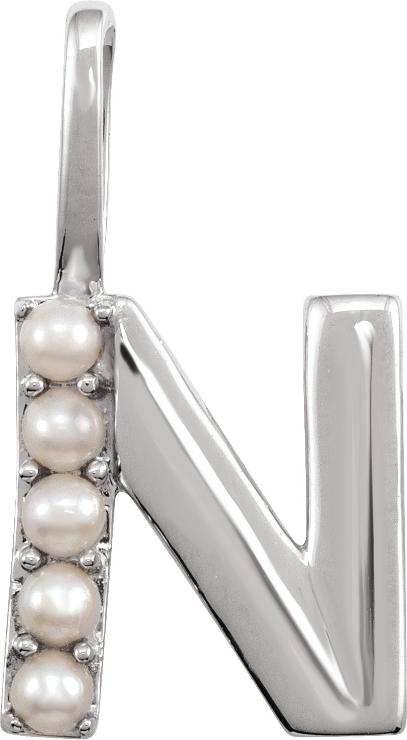 14K White Cultured White Pearl Initial N Charm or Pendant Ref 18479282