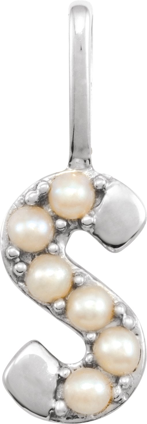 14K White Cultured White Pearl Initial S Charm or Pendant Ref 18479297