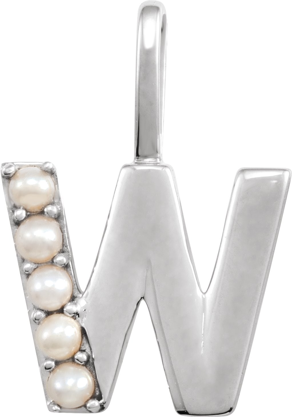 14K White Cultured White Pearl Initial W Charm or Pendant Ref 18479309