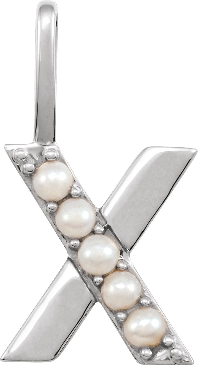 14K White Cultured White Pearl Initial X Charm or Pendant Ref 18479312