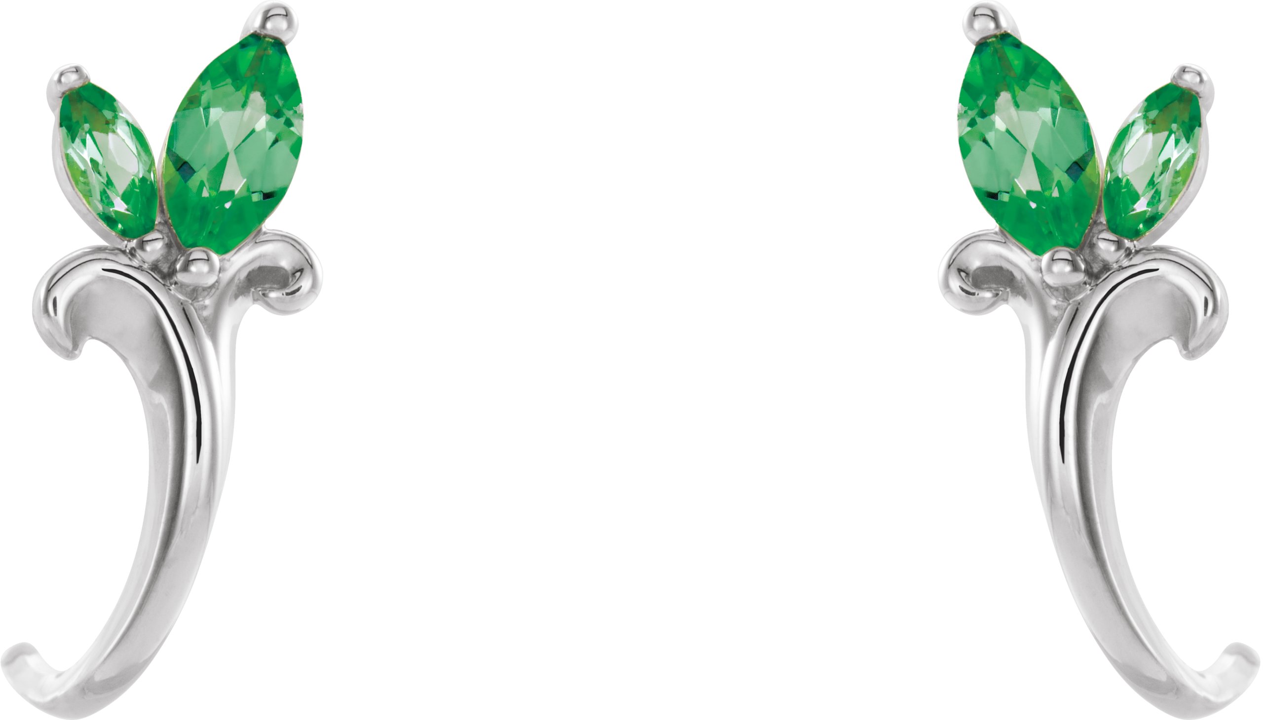 Description: Genuine Emerald Floral-Inspired J-Hoop Earrings