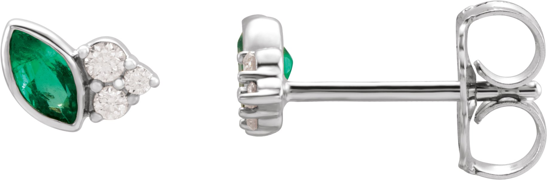 Description: Genuine Emerald And .05 Ctw Diamond Earrings