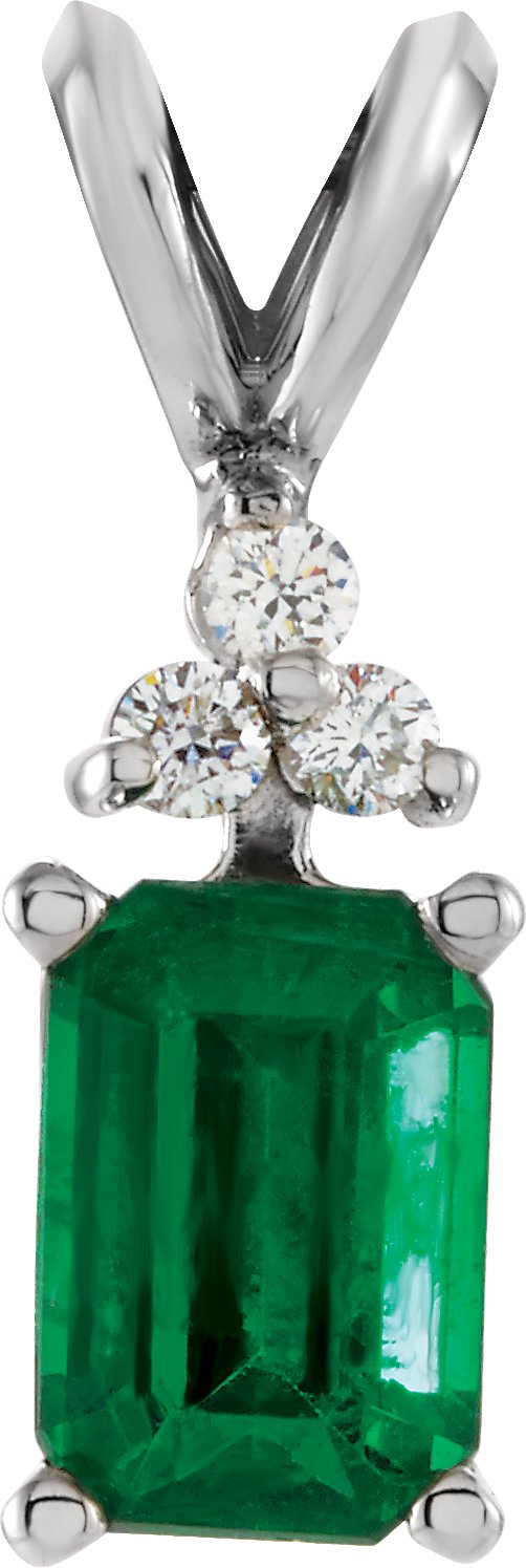 14K White Emerald and .06 CTW Diamond Pendant