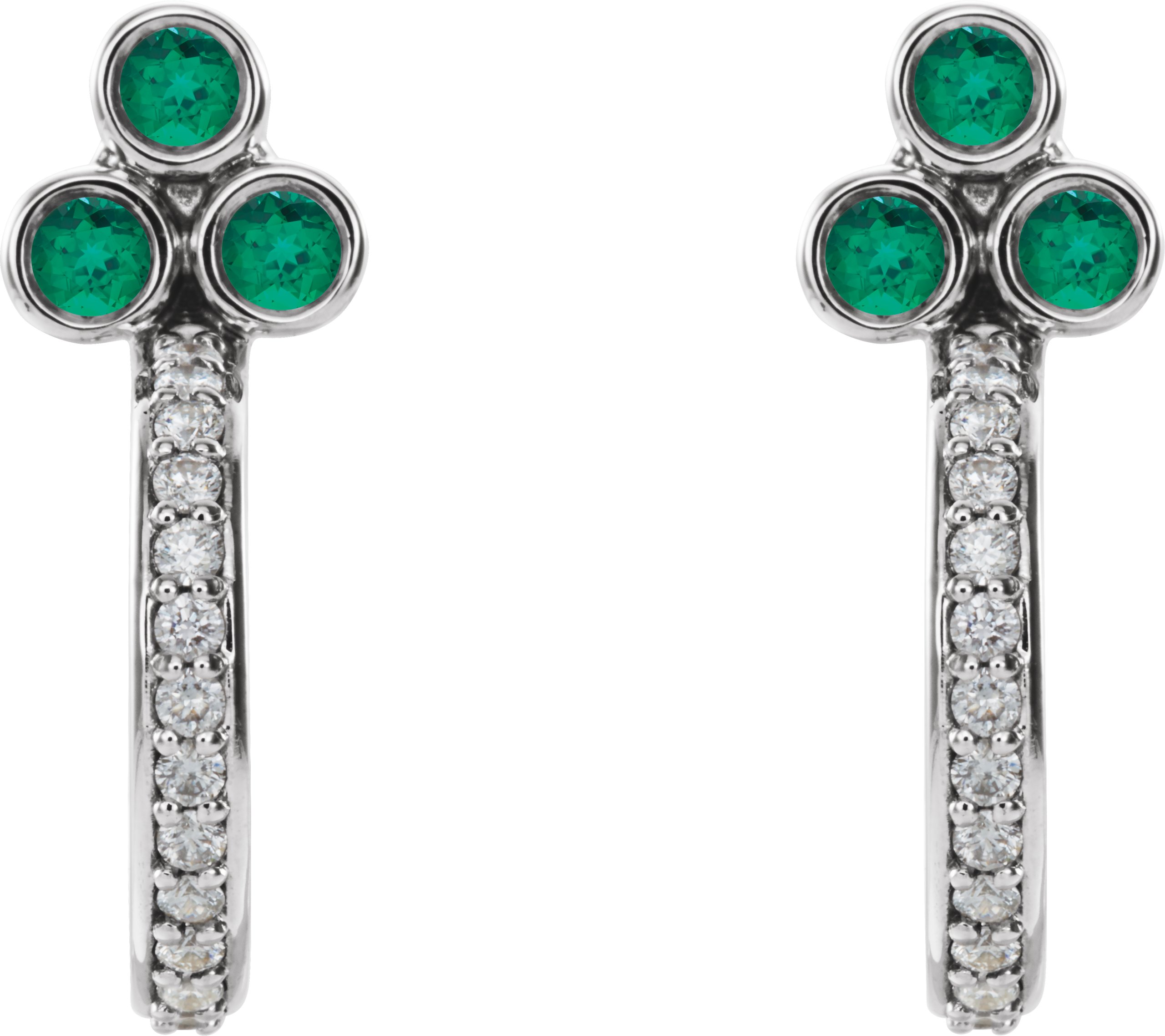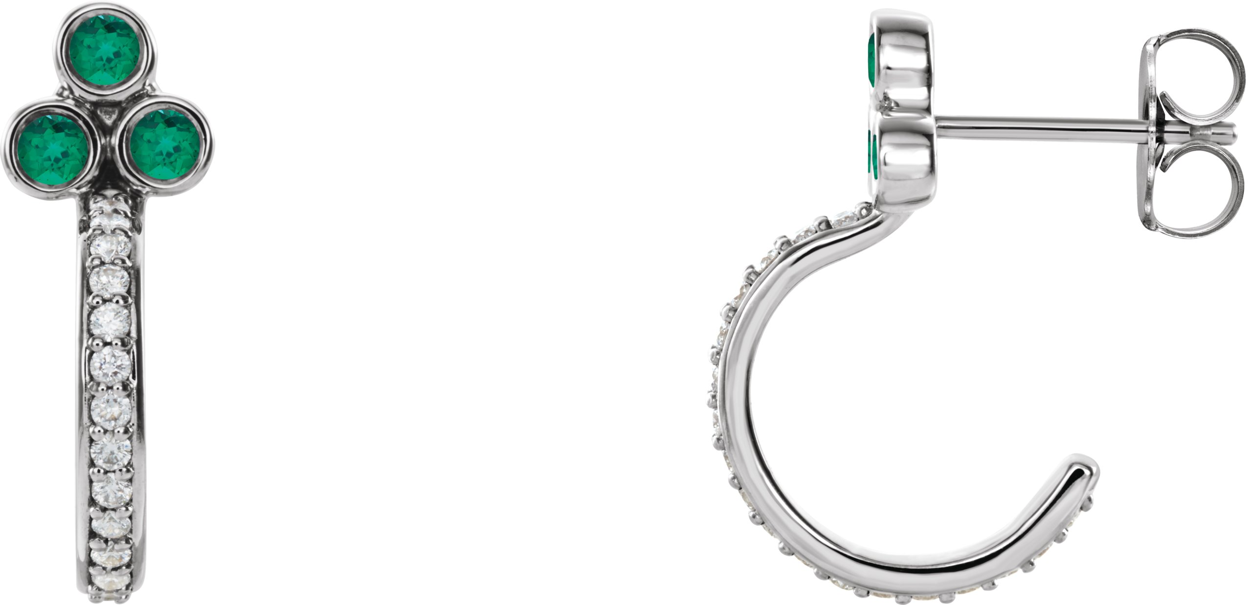 Description: Genuine Emerald And 1/4 Ctw Diamond J-Hoop Earrings