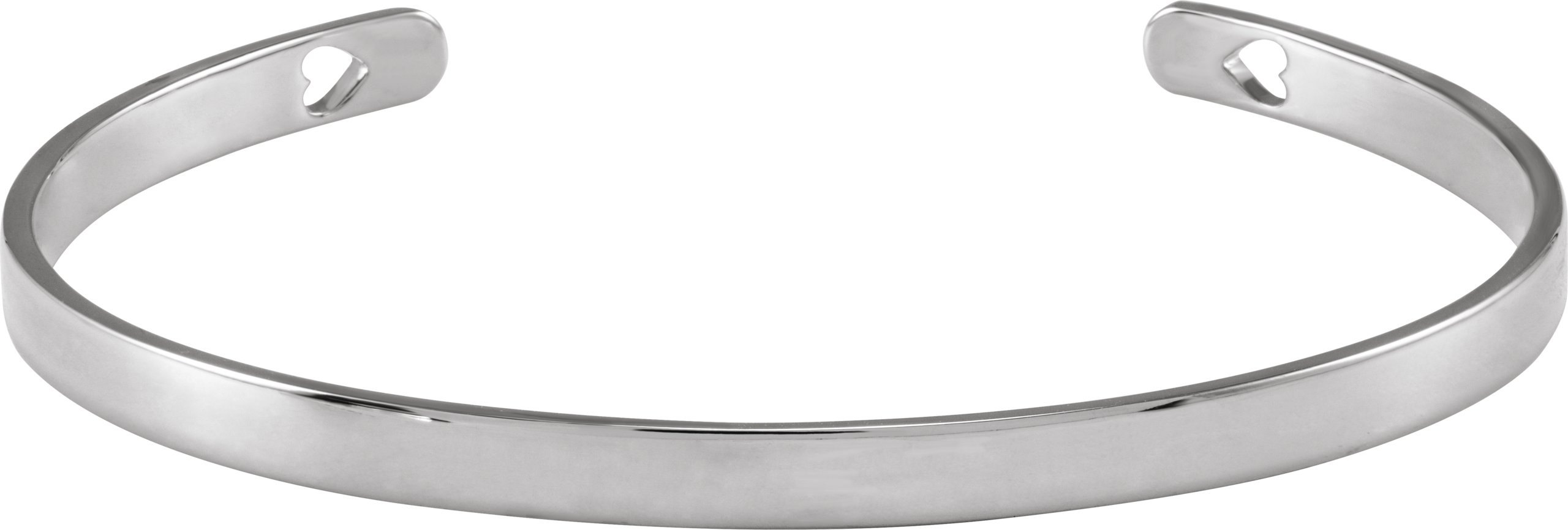 14K White Engravable Heart Pierced Cuff 7" Bracelet
