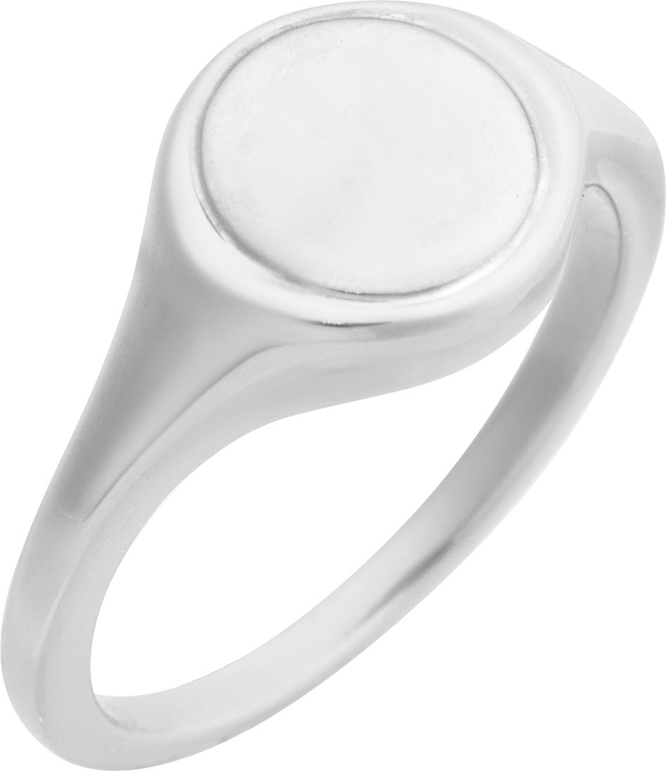14K White Engravable Round Signet Ring