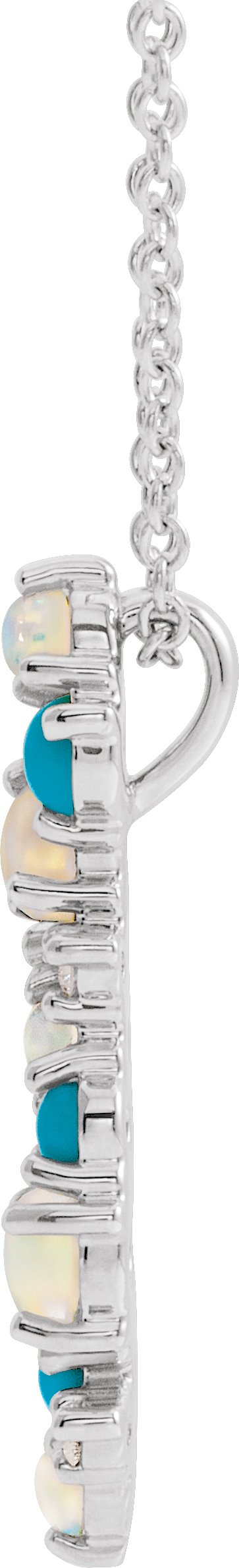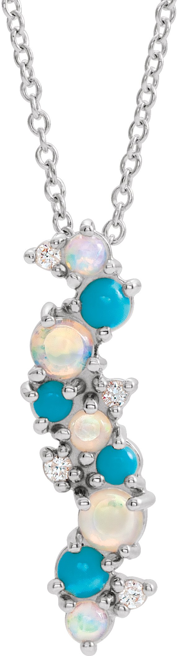 14K White Ethiopian Opal Turquoise & .03 CTW Diamond 16 18 inch Necklace