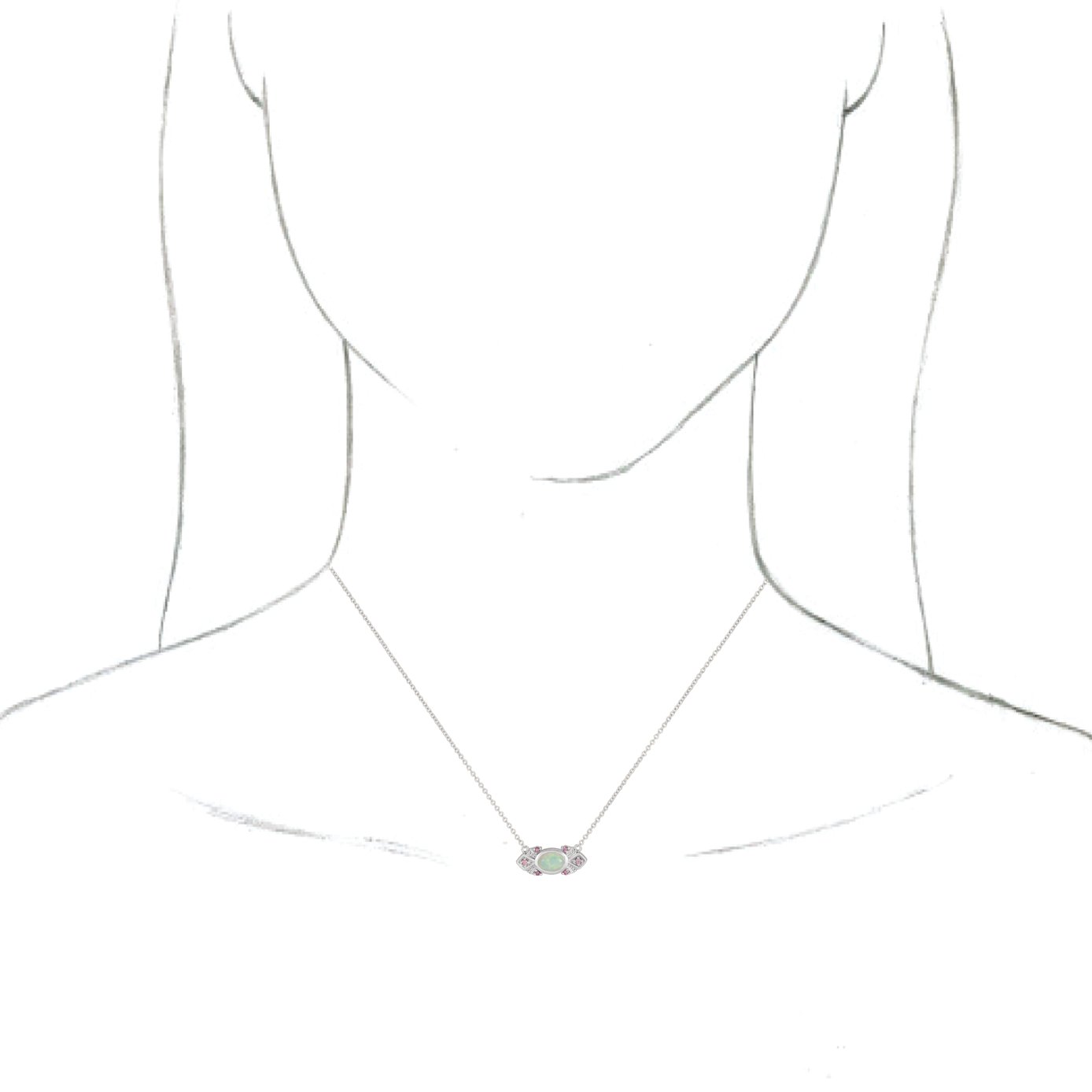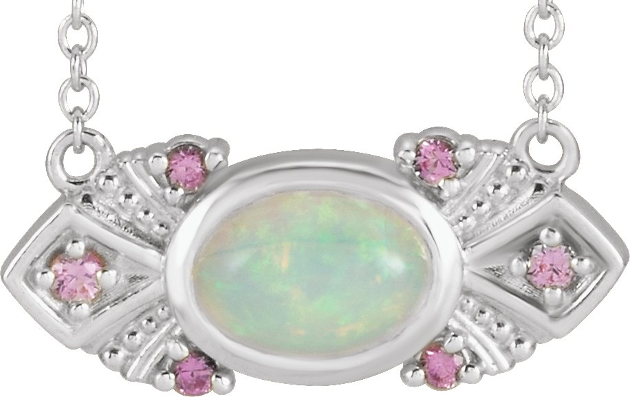 14K White Ethiopian Opal & Pink Sapphire Vintage Inspired 16 inch Necklace