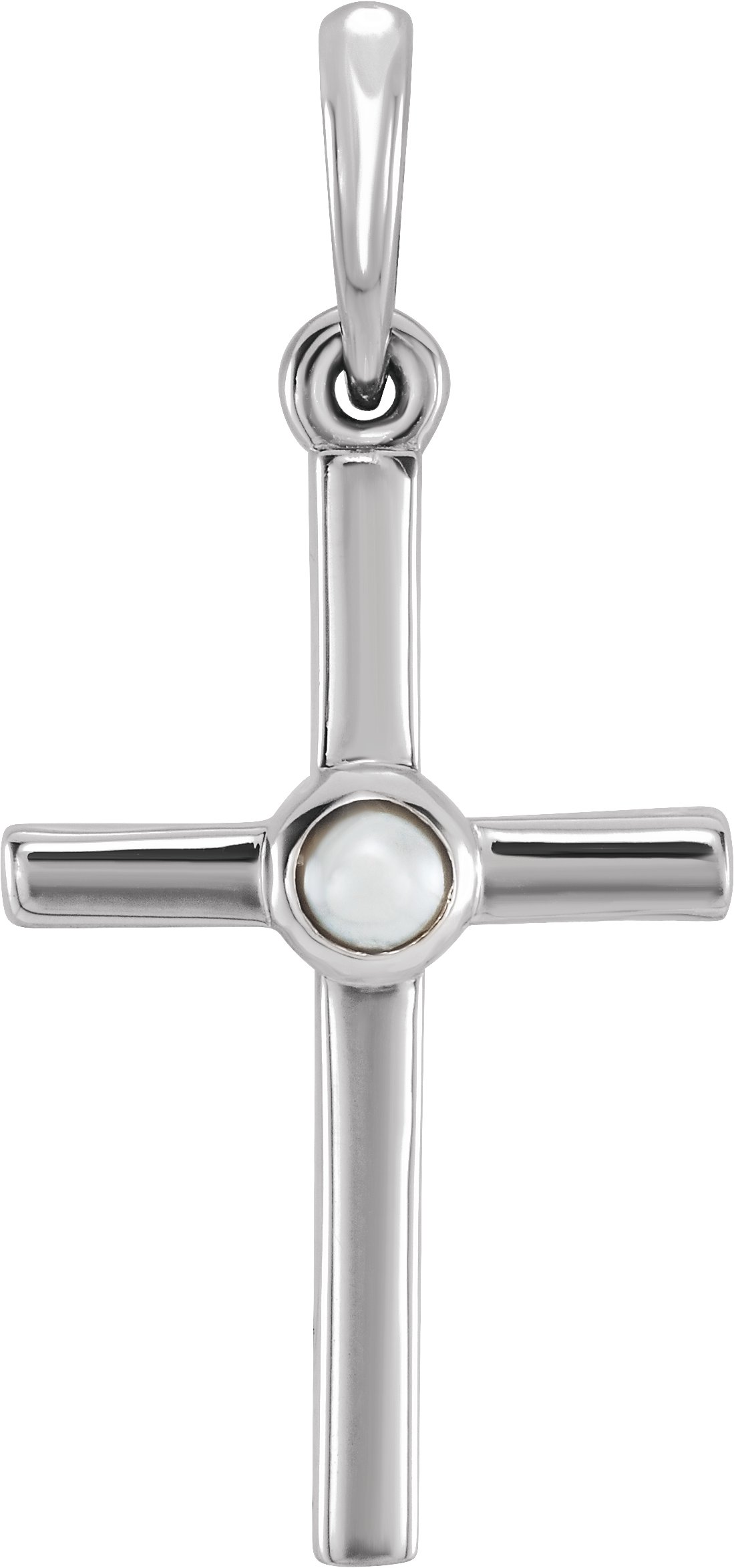 14K White Freshwater Cultured Pearl Cross Pendant Ref. 12121319