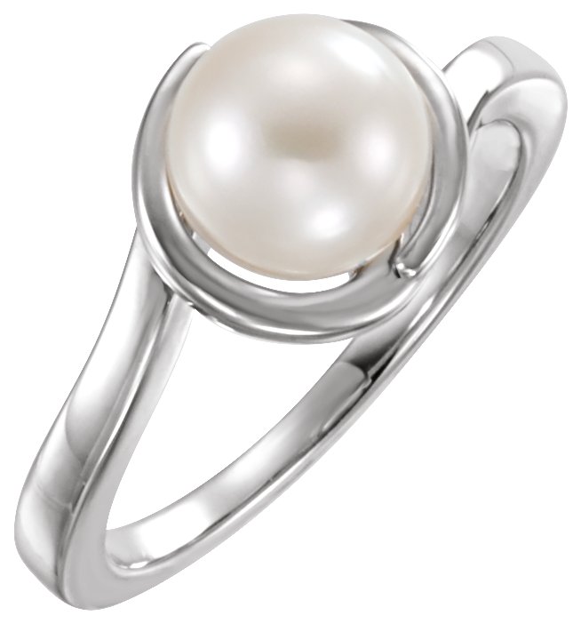 14K White Freshwater Cultured Pearl Ring