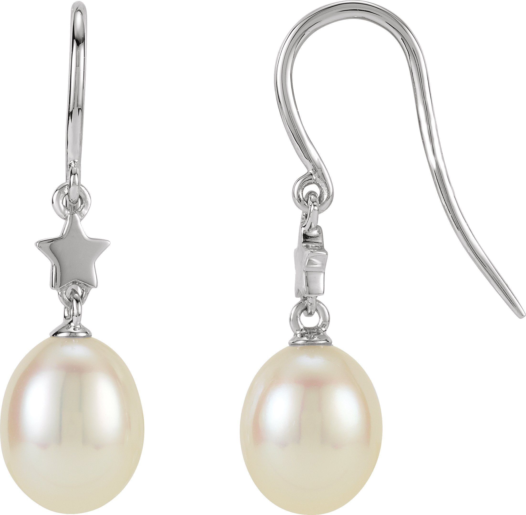 14K White Freshwater Cultured Pearl Star Dangle Earrings