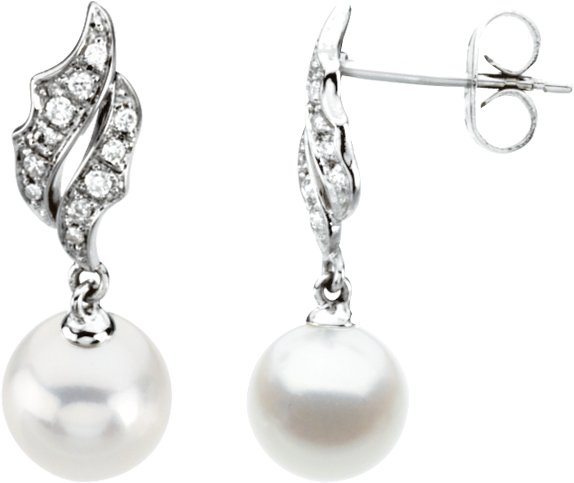 14K White Freshwater Cultured Pearl & 1/10 CTW Diamond Earrings