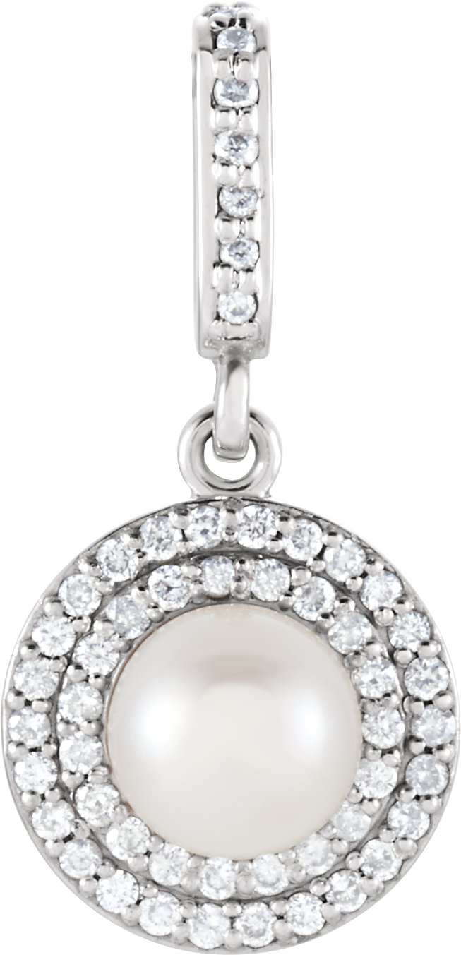 14K White Freshwater Cultured Pearl & 1/8 CTW Diamond Pendant