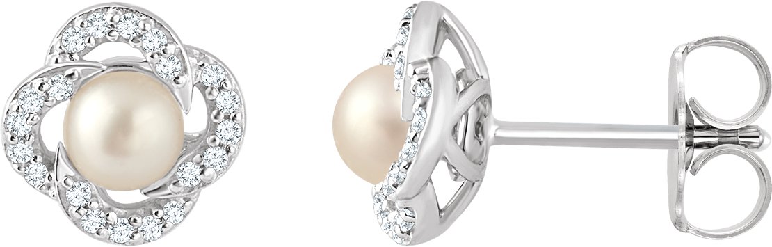 14K White Freshwater Cultured Pearl & 1/6 CTW Diamond Earrings