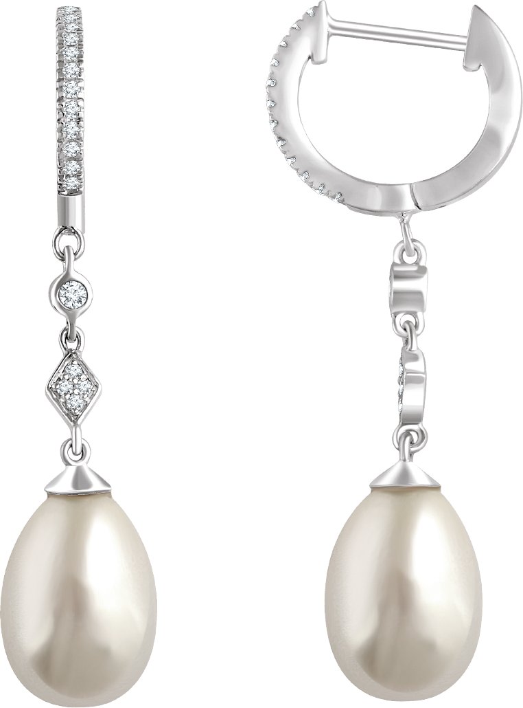14K White Freshwater Cultured Pearl & 1/6 CTW Diamond Earrings