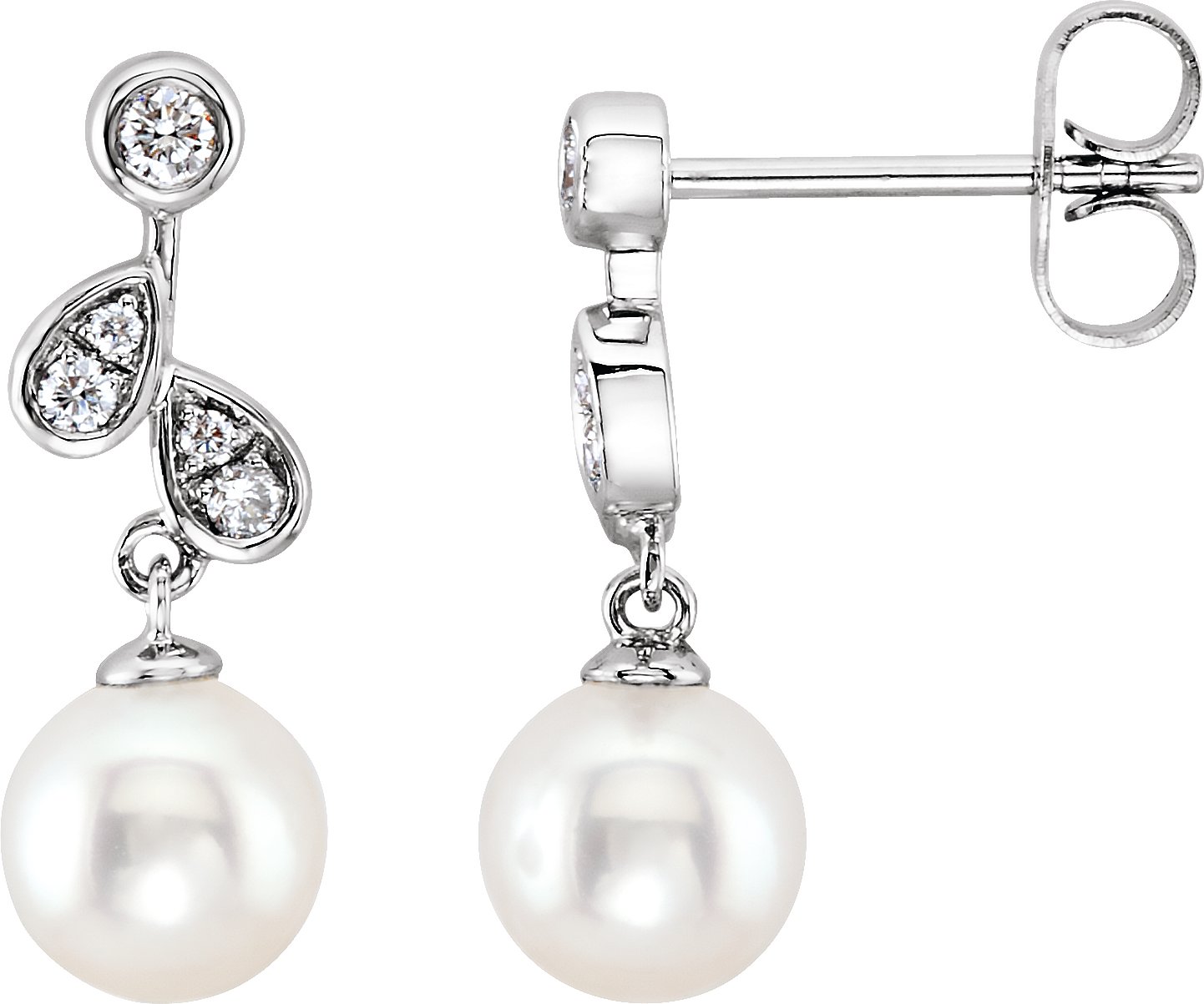 14K White Freshwater Cultured Pearl & 1/6 CTW Diamond Earrings