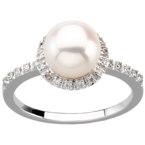 14K White Freshwater Cultured Pearl & 1/5 CTW Diamond Ring Size 8