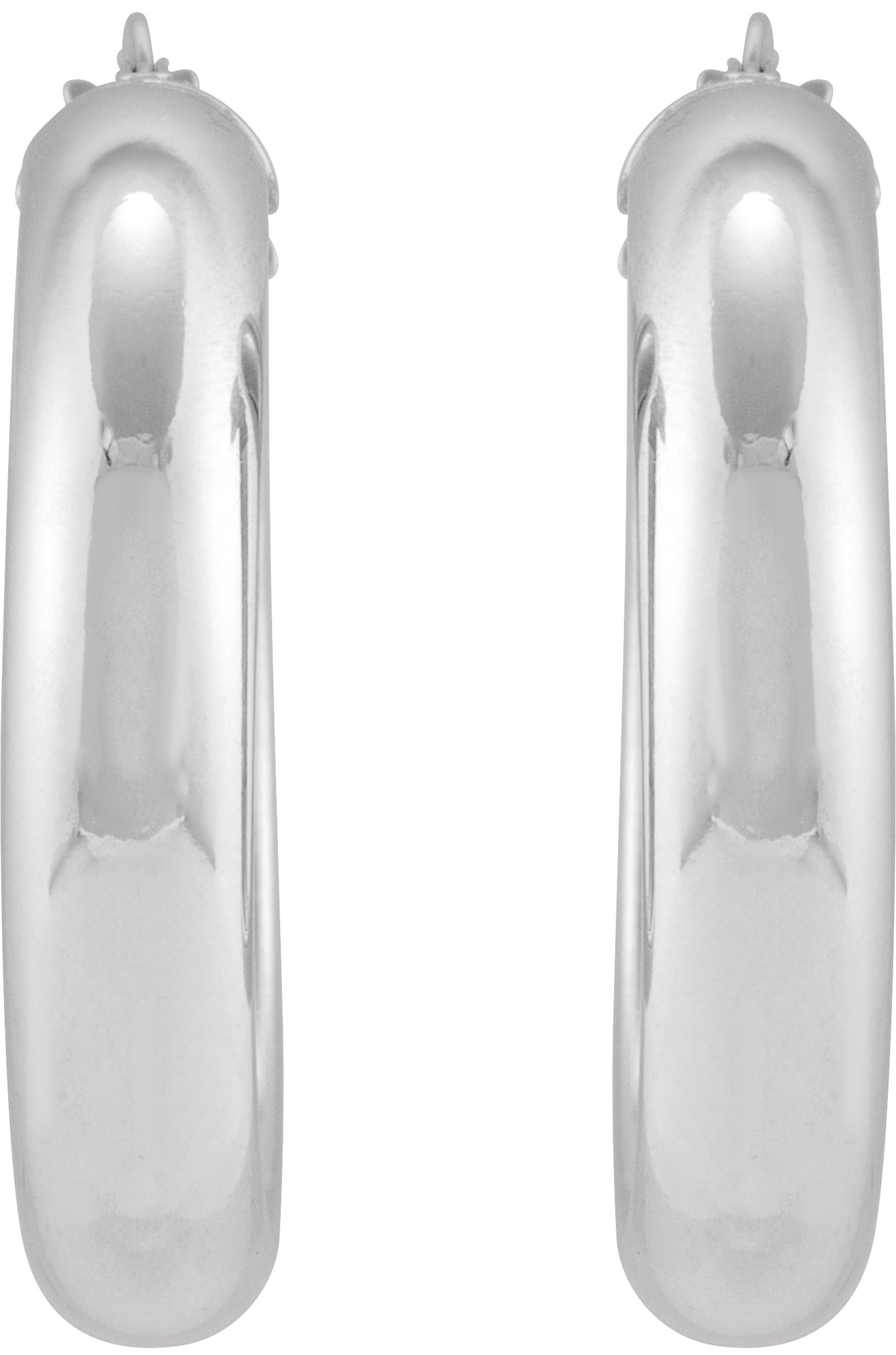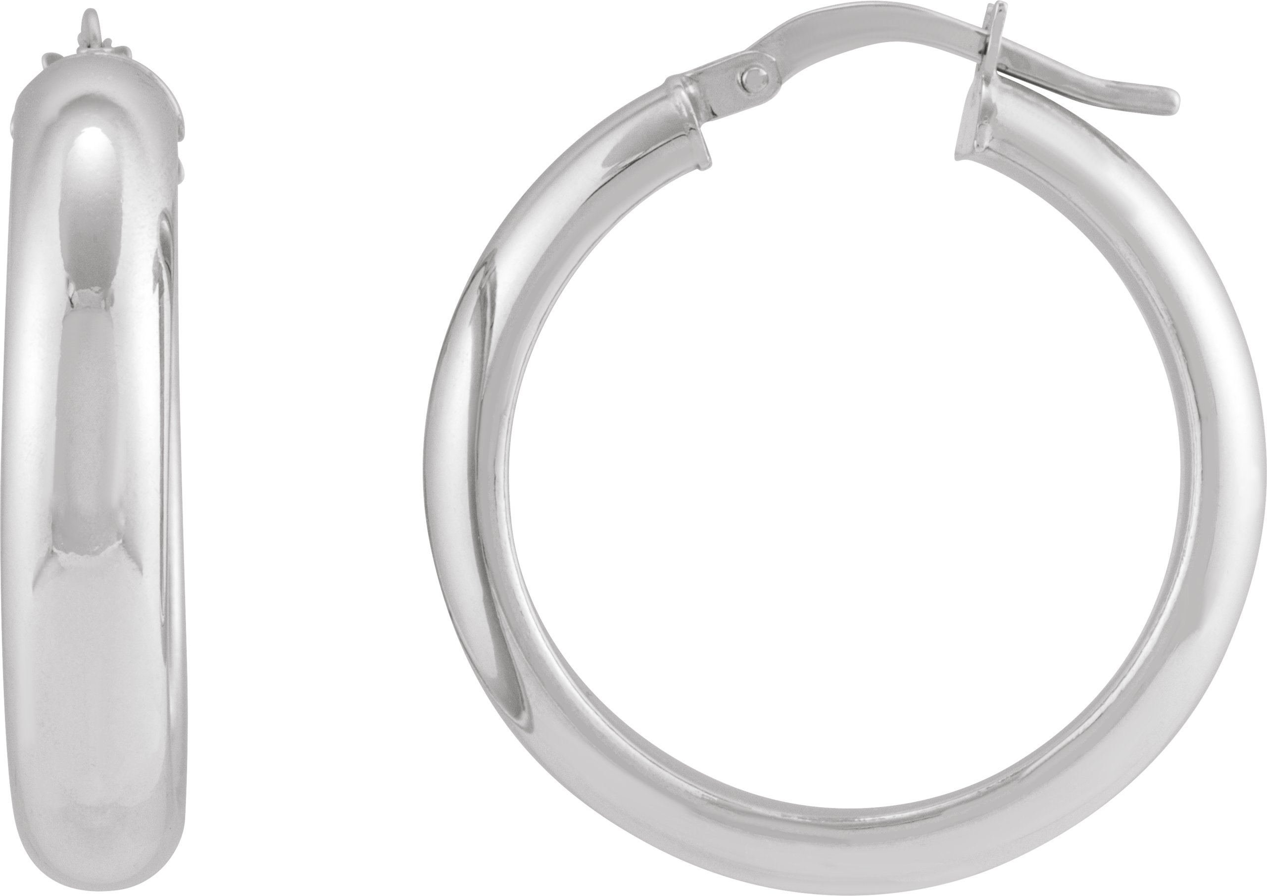 14K White Half-Round Tube 30 mm Hoop Earrings