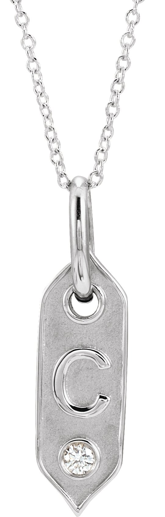 14K White Initial C .05 CT Diamond 16-18" Necklace