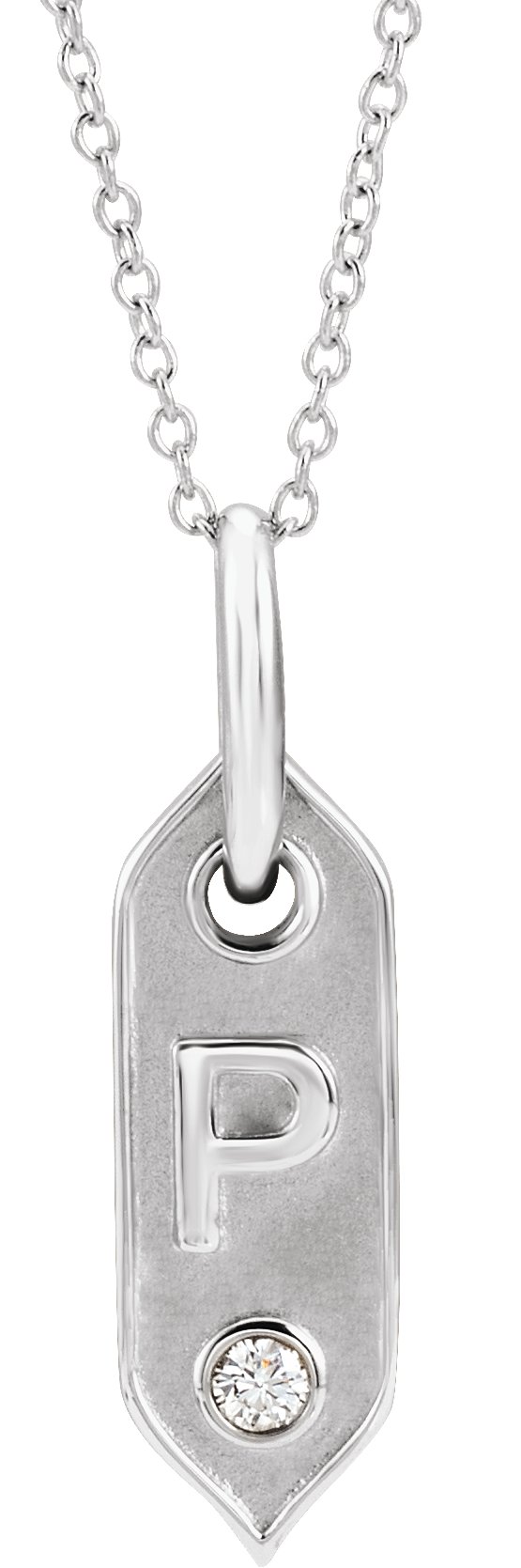 14K White Initial P .05 CT Diamond 16-18" Necklace