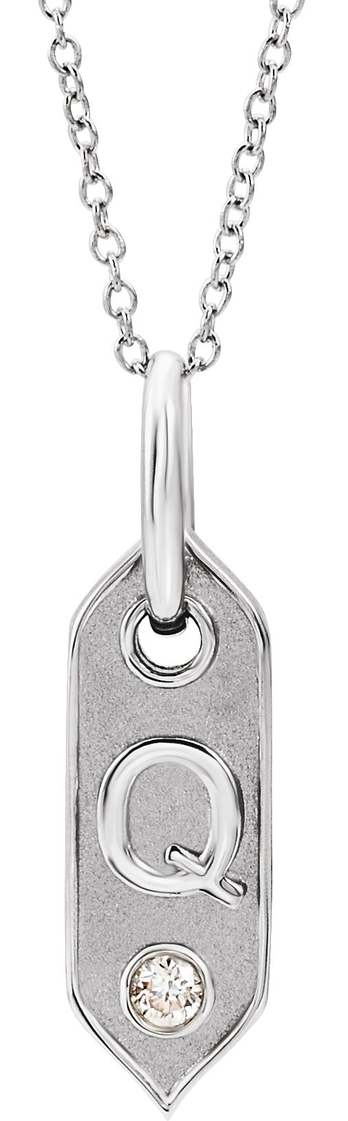 14K White Initial Q .05 CT Diamond 16-18" Necklace