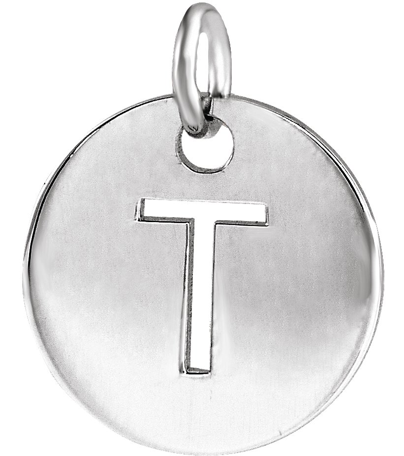 14K White Initial T 10 mm Disc Pendant Ref 16868419