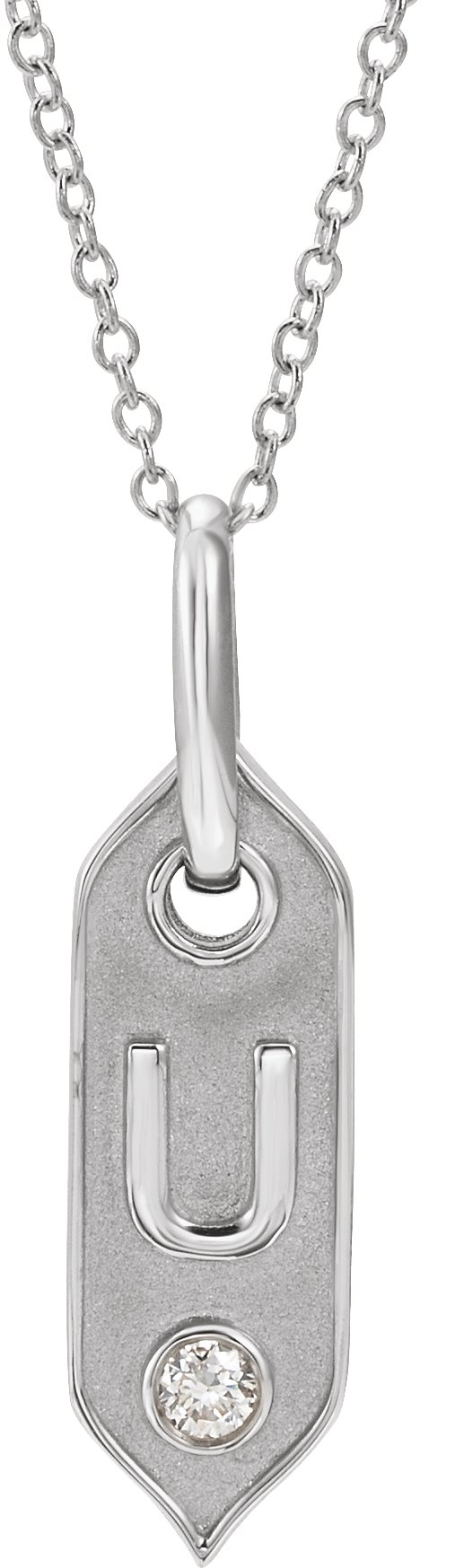 14K White Initial U .05 CT Diamond 16-18" Necklace