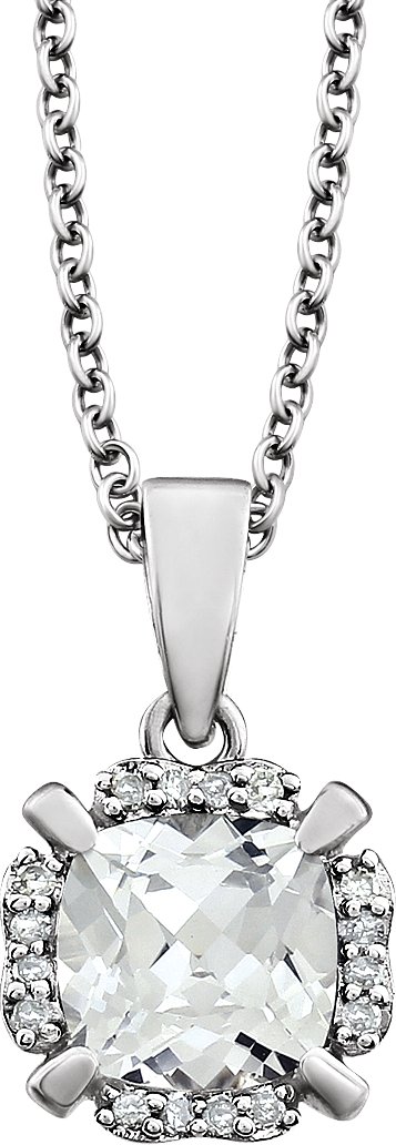 14K White Lab Created White Sapphire & .05 CTW Diamond 18 inch Necklace