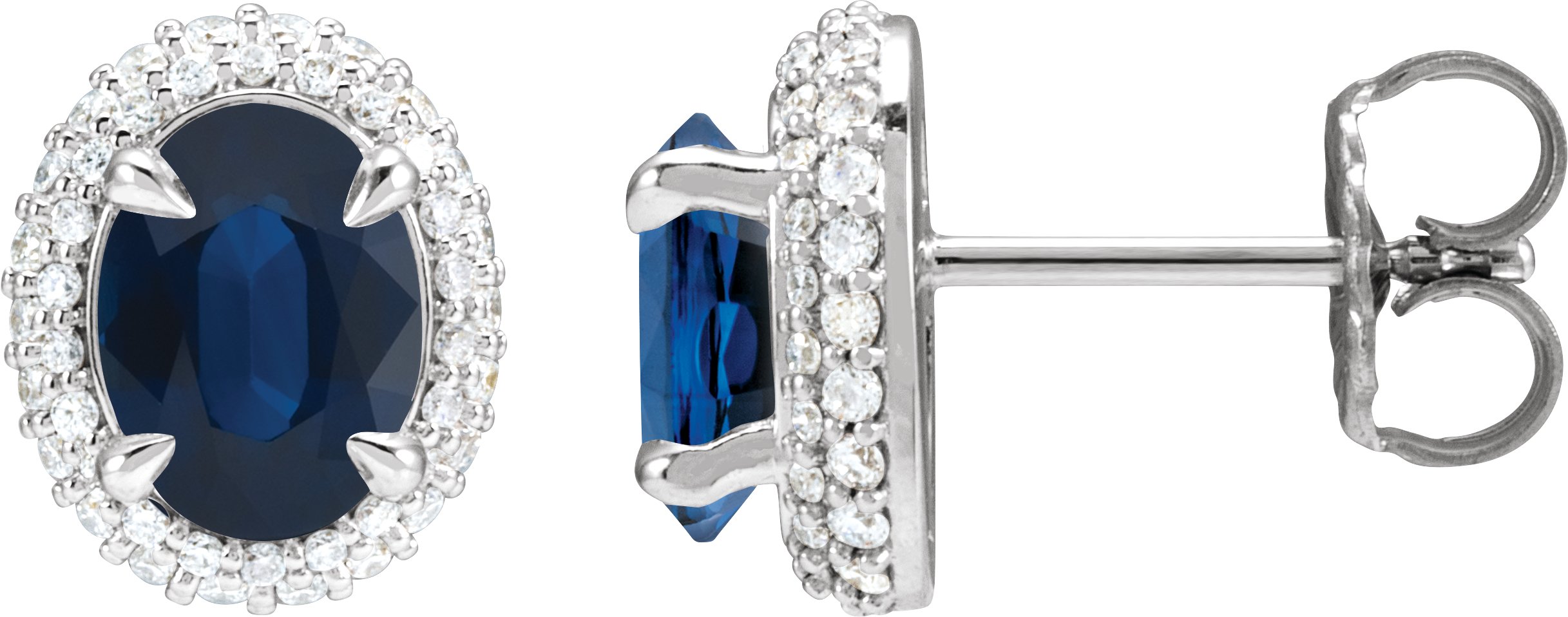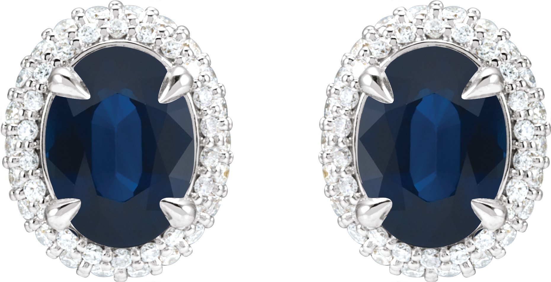 Description: Lab-Grown Blue Sapphire And 1/2 CTW Lab-Grown Diamond 4-Claw Prong Pre-Notched Double Halo-Style Earrings