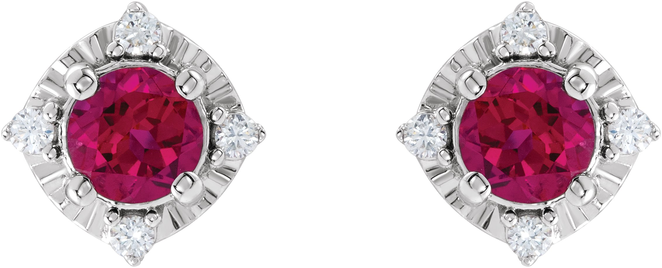 Description: Lab-Grown Ruby And .08 CTW Natural Diamond Earrings