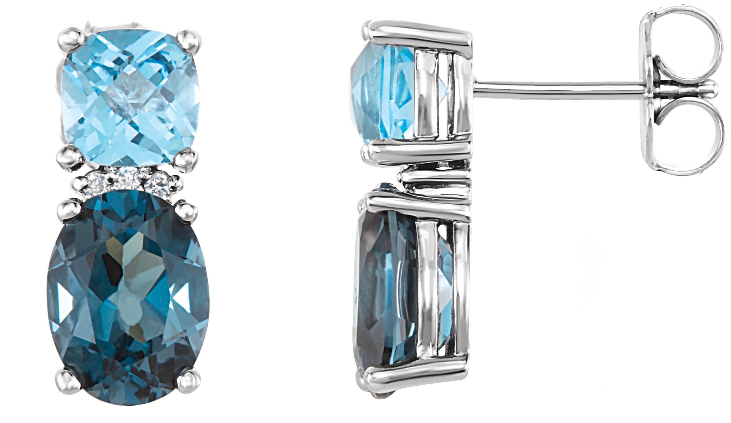 14K White London Blue Topaz, Swiss Blue Topaz & .01 CTW Diamond Earrings