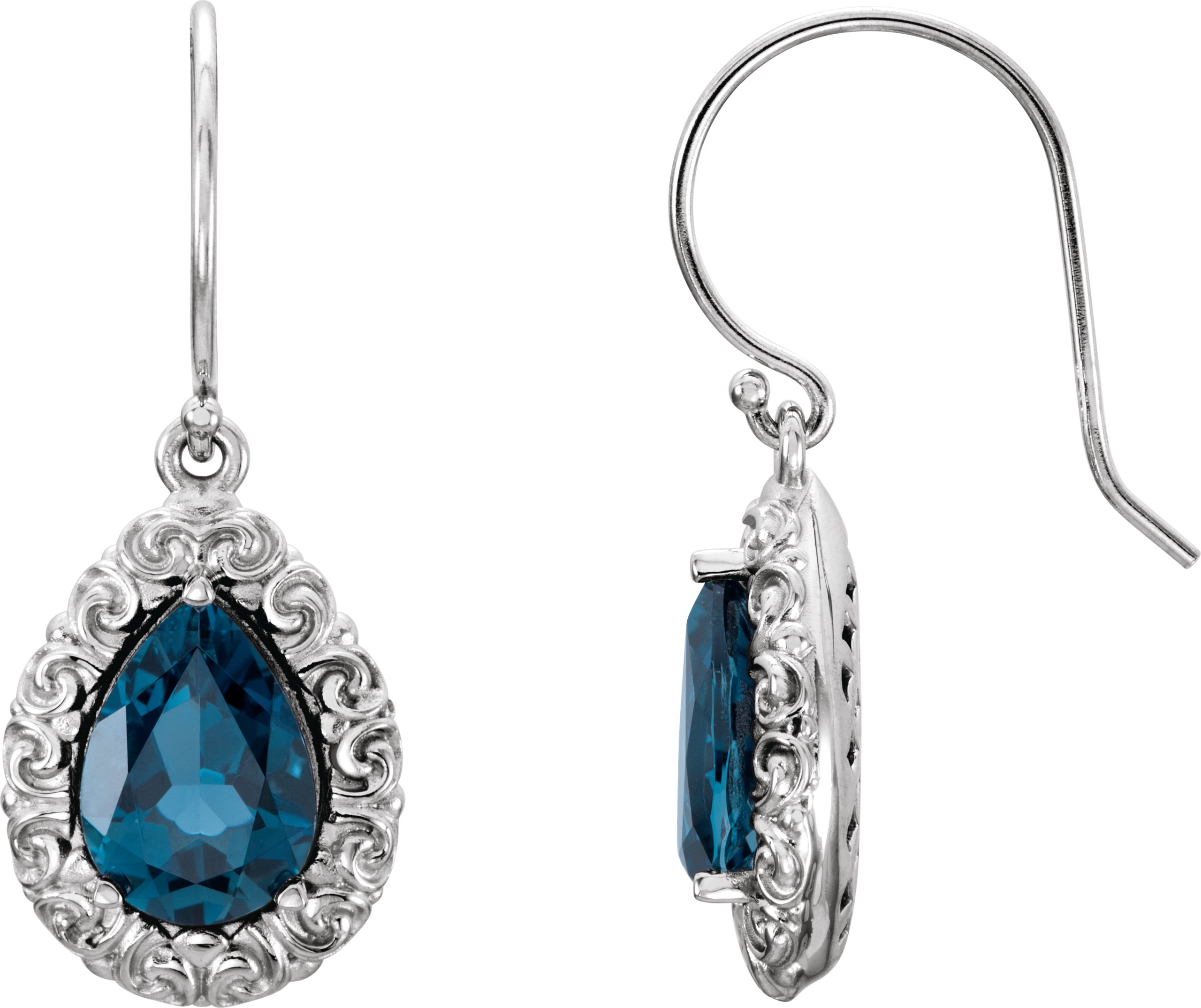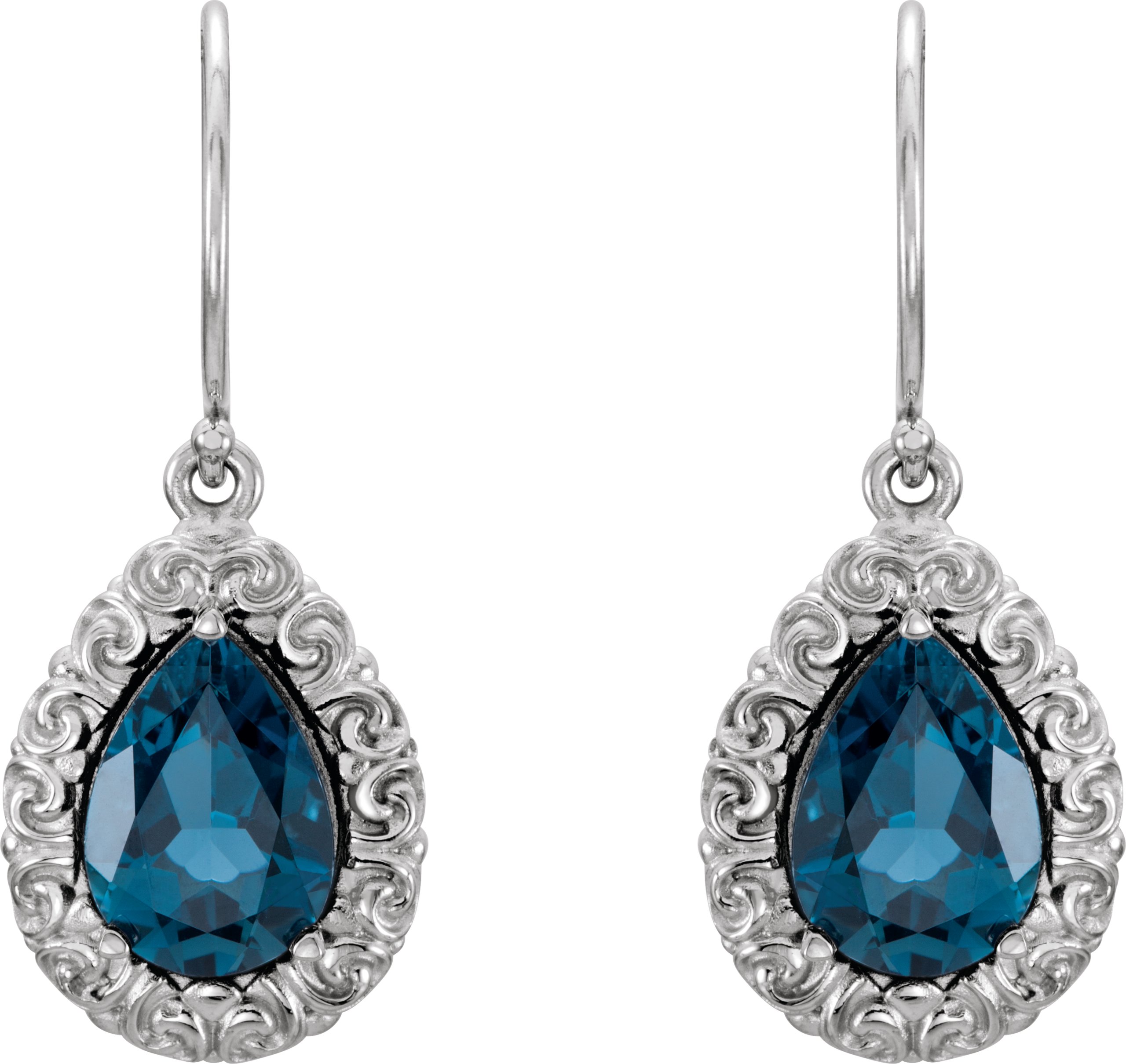 14K White London Blue Topaz Sculptural Inspired Dangle Earrings