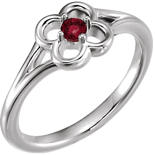 Description: Genuine Mozambique Garnet Flower Youth Ring