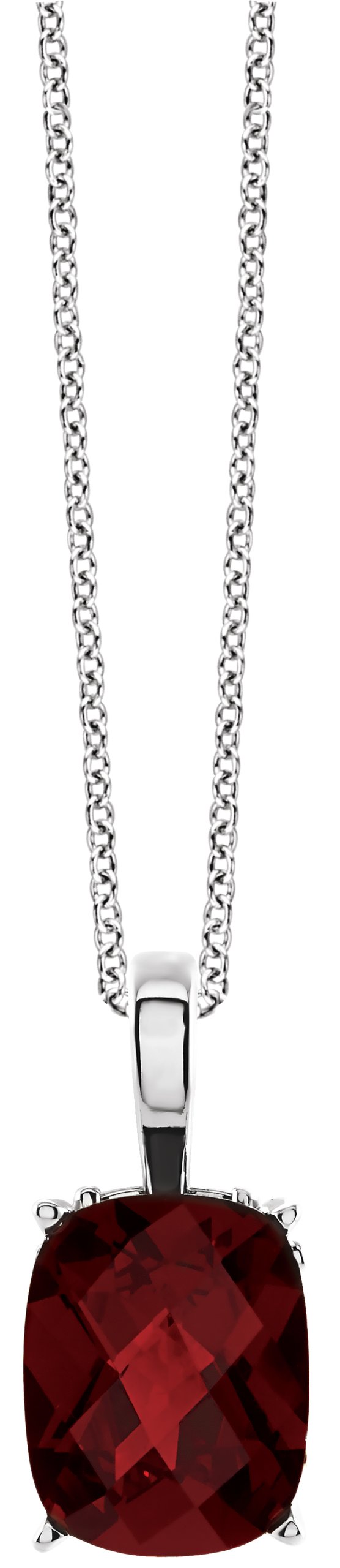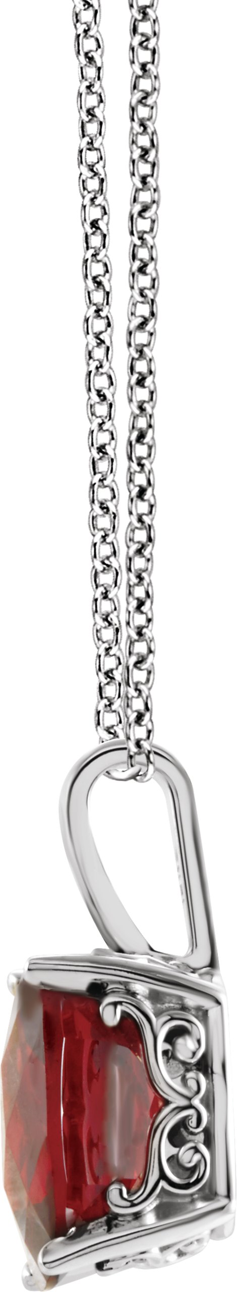 14K White Mozambique Garnet Solitaire Vintage Scroll 18 inch Necklace