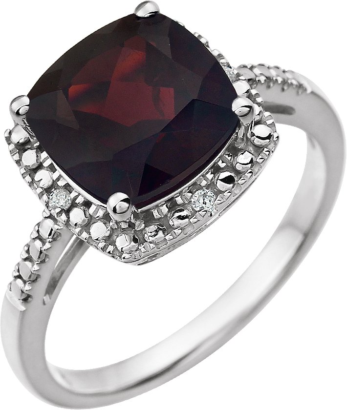Description: Genuine Mozambique Garnet And .03Ctw Diamond Ring