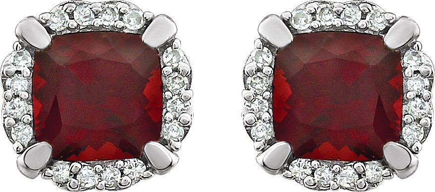 14K White Mozambique Garnet & 1/10 CTW Diamond Earrings
