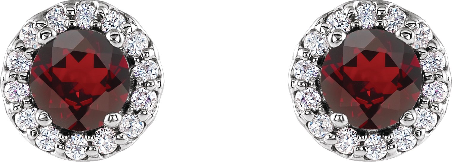 14K White Mozambique Garnet and .17 CTW Diamond Earrings