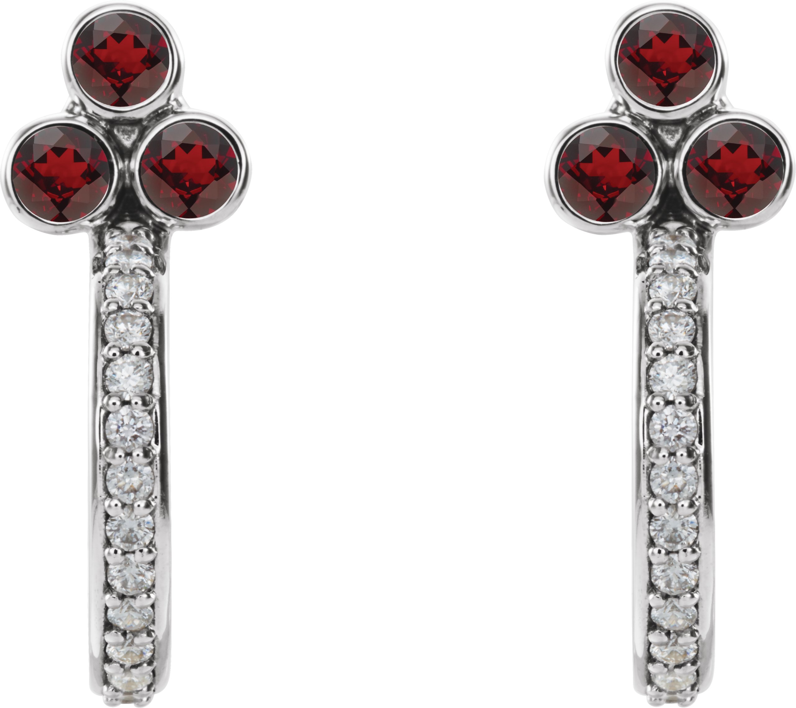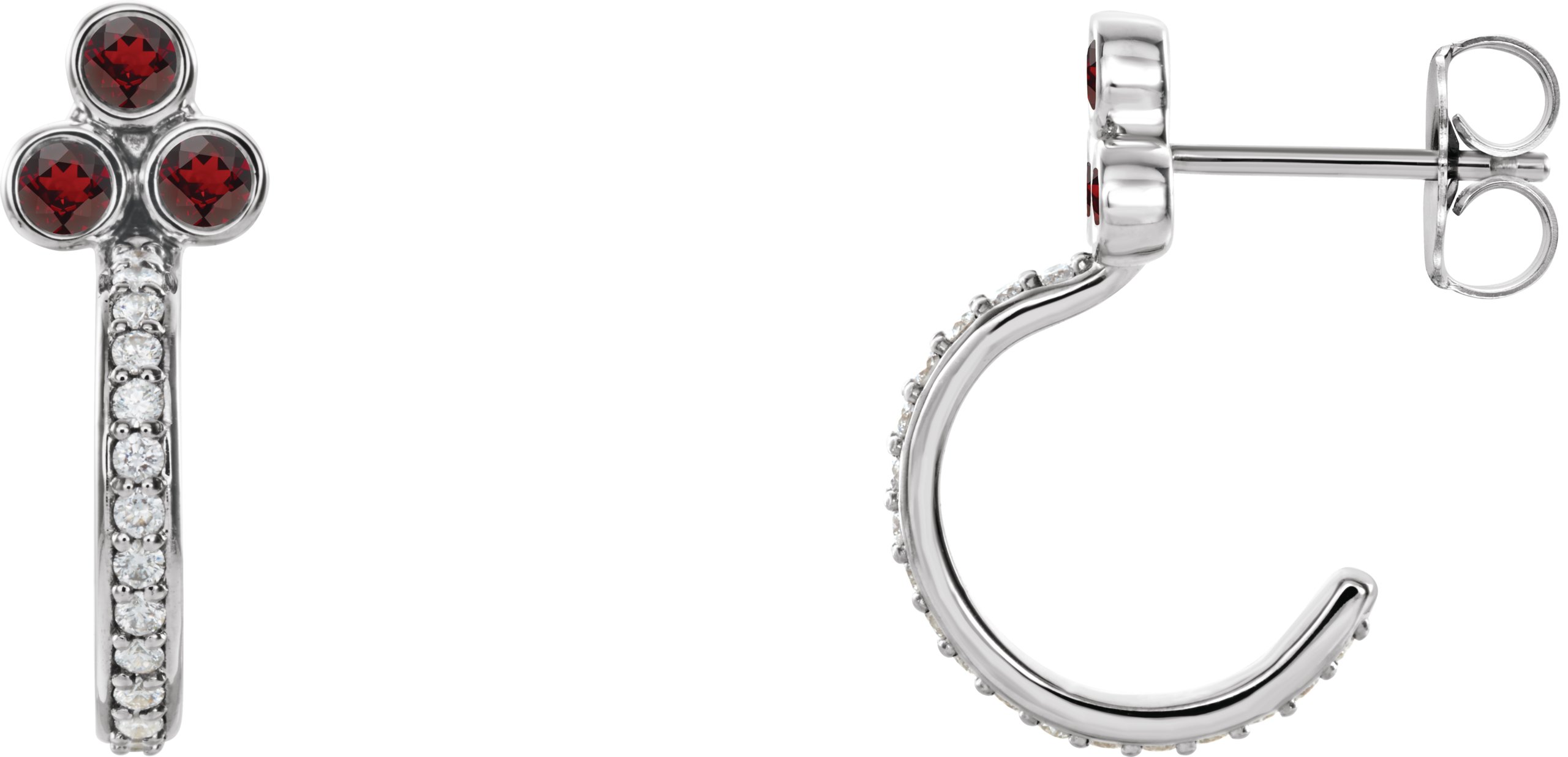 Description: Genuine Mozambique Garnet And 1/4 Ctw Diamond J-Hoop Earrings