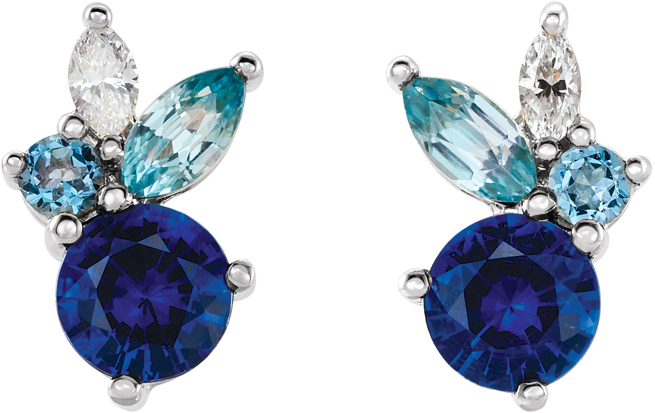 14K White Multi Gemstone Earrings